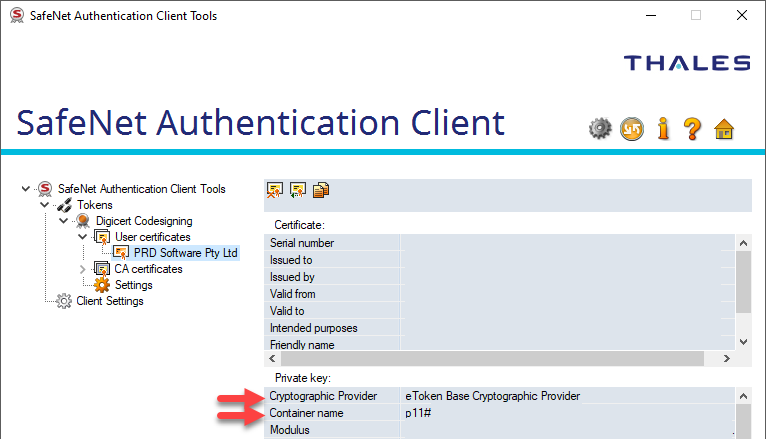 Copy the name of the Cryptographic Provider. It should be: eToken Base Cryptographic Provider