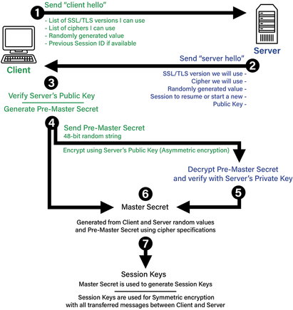 - Client Hello: When a user visits a secure website, their browser initiates the process by sending a "hello" message to the server, including the supported encryption algorithms(also known as a cipher suite).